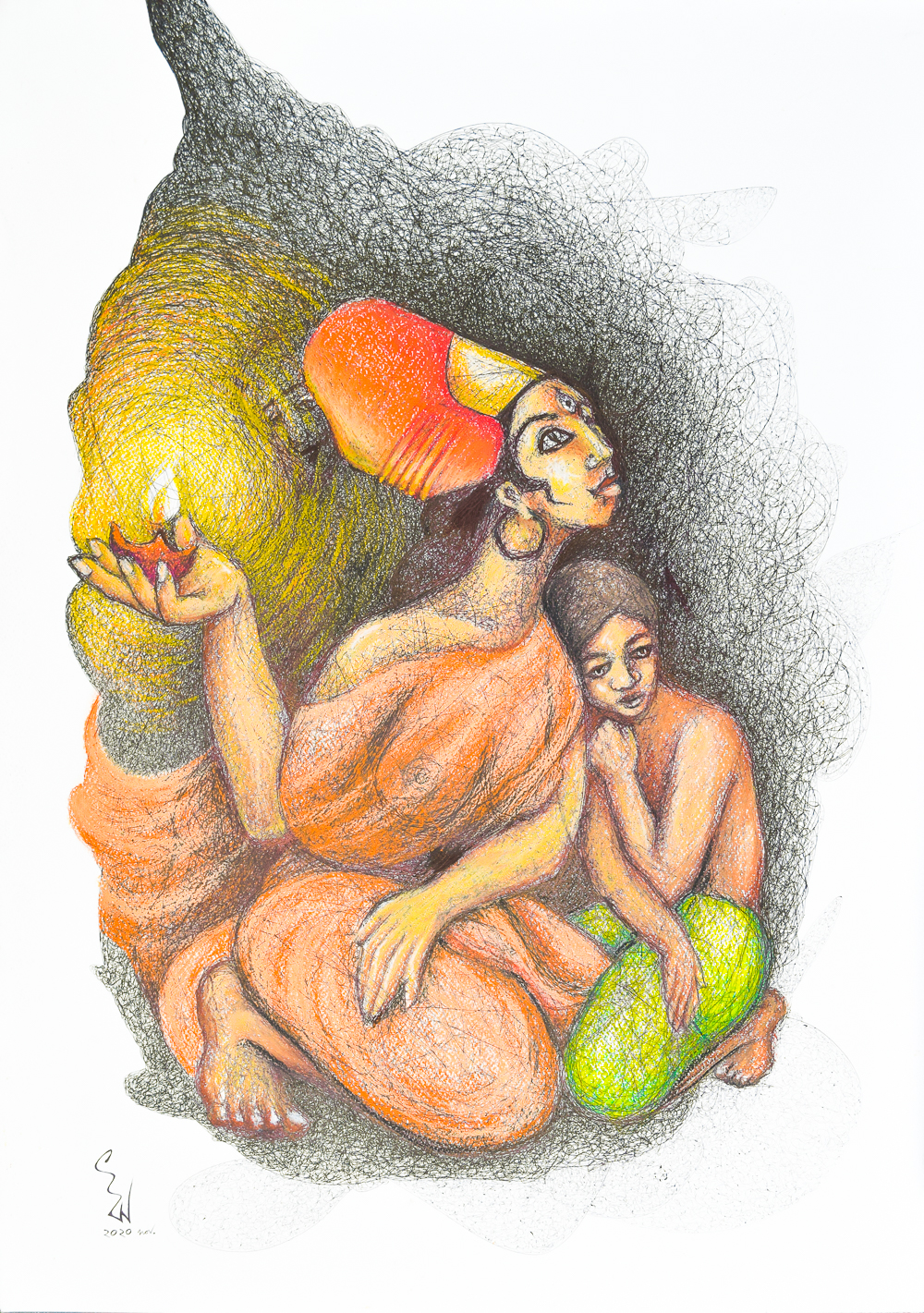 Holding his hand and his sigh,