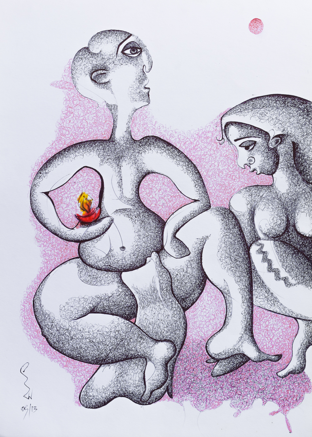 In the red spot.